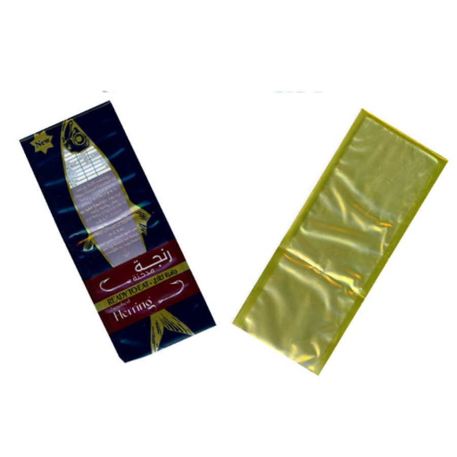 Vacuum-sealed, oxygen-barrier packaging for smoked herring. Preserves flavor and extends shelf life for retail and export seafood markets.